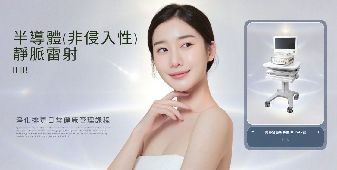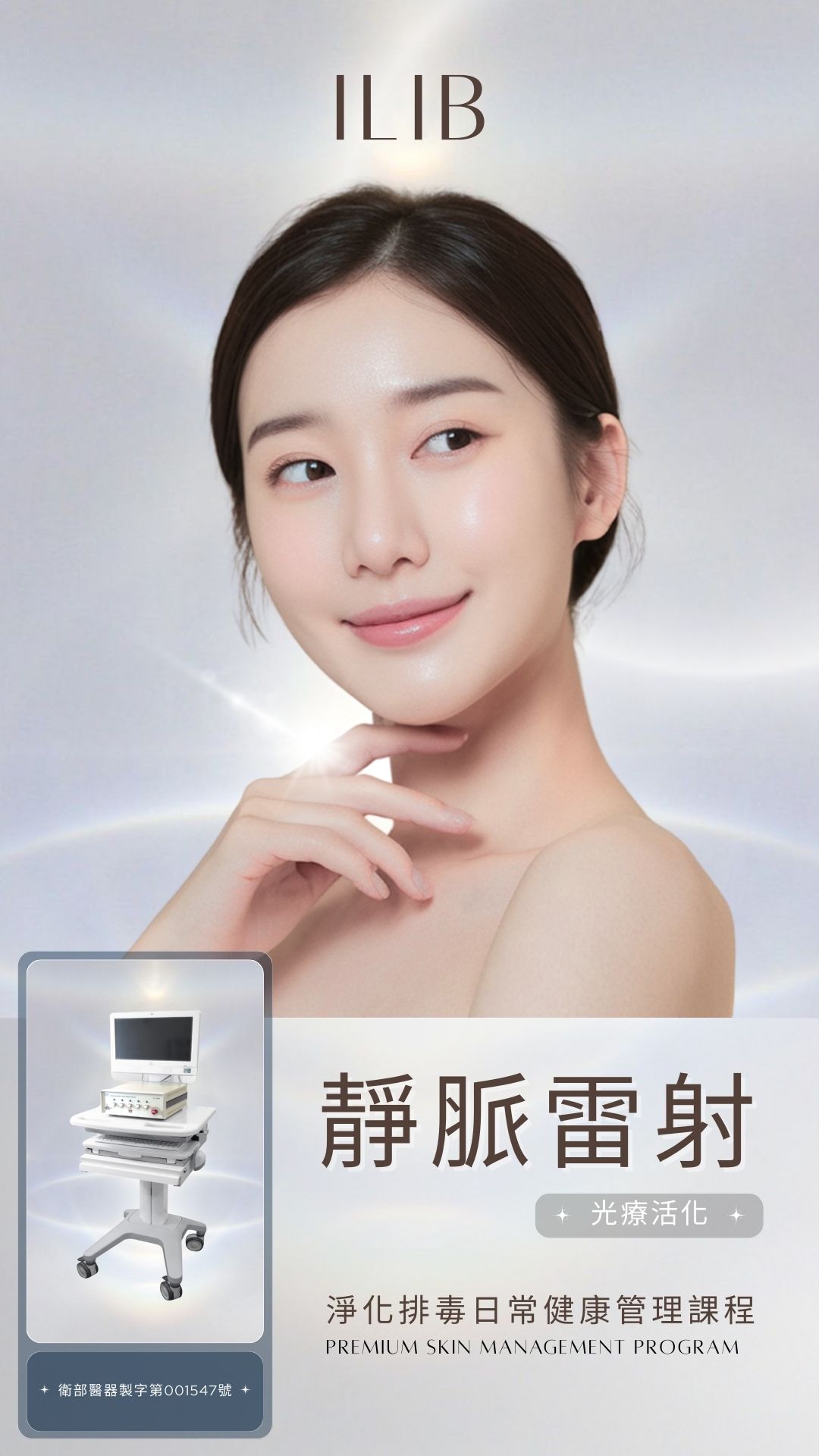 靜脈雷射 (ILIB)為波長632.8nm的氦氖雷射,是一種低能量的雷射治療,利用光纖導管將雷射光從手臂靜脈導入(也可以由鼻腔內導入。鼻/耳內光生物調節法(PBMT)),血液流經此處就像在照射日光浴,可增加體內的核甘酸(ATP) 分子提供代謝所需能量、分子提供代謝所需能量、激發粒線體的活性,使紅血球的攜氧能力增加(給氧),白血球及其他,白血球及其他免疫相關的機能也會改善(排毒),具有清除體內自由基、減少身體發炎、活化血液、降低血脂、修復神經病變等效果。
