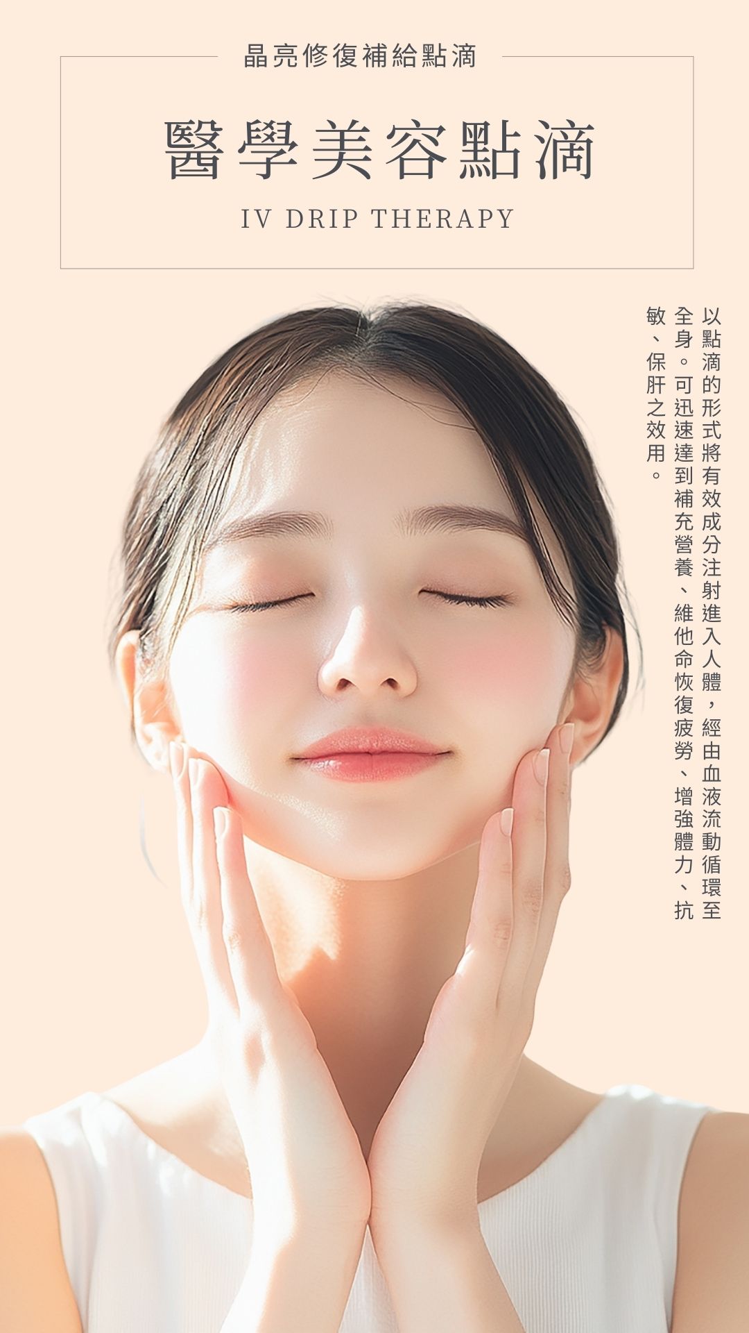 『 醫學美容 』點滴是一種透過靜脈點滴方式,將特定營養成分或功能性物質直接輸送至體內的療程。有效成分經由血液循環迅速分布全身,協助身體進行修復與調節,達到內在調理與外在改善的雙重效果。
