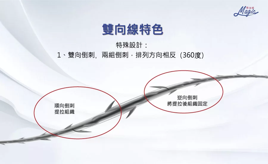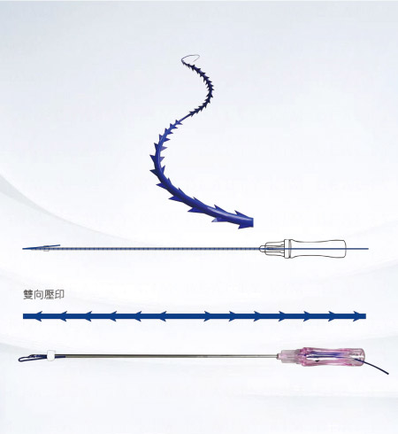 線體採用模具壓出魚骨般的刺可以在組織內慢吸收,增加皮膚固定時效