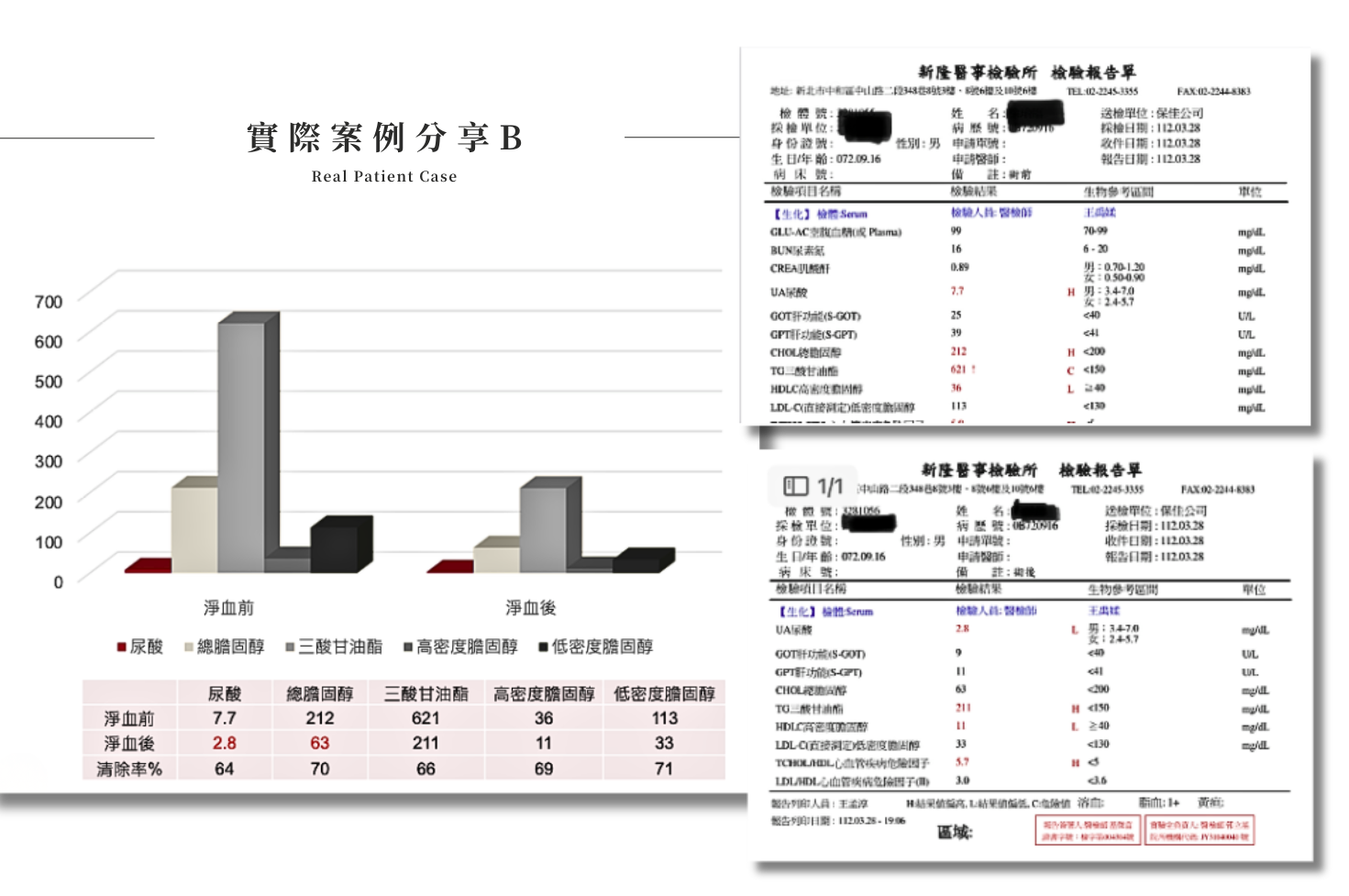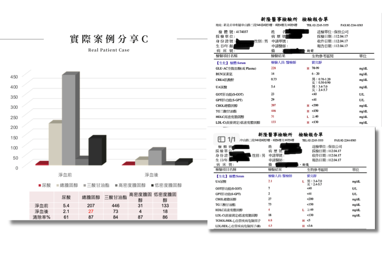 療程透過清除血液中一定比例的血漿,去除其中可能影響健康的物質,包括膽固醇、三酸甘油脂、發炎因子、過敏因子、自由基、尿酸與重金屬等,有助於改善血脂異常、過敏體質與血液循環相關問題,並降低慢性疾病風險。