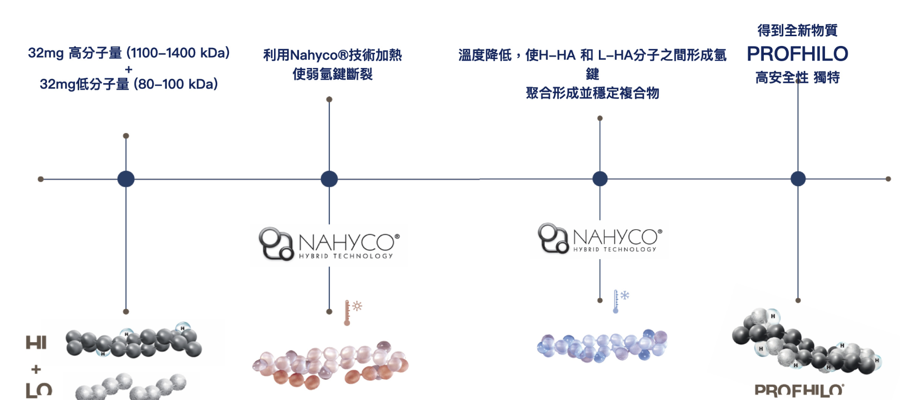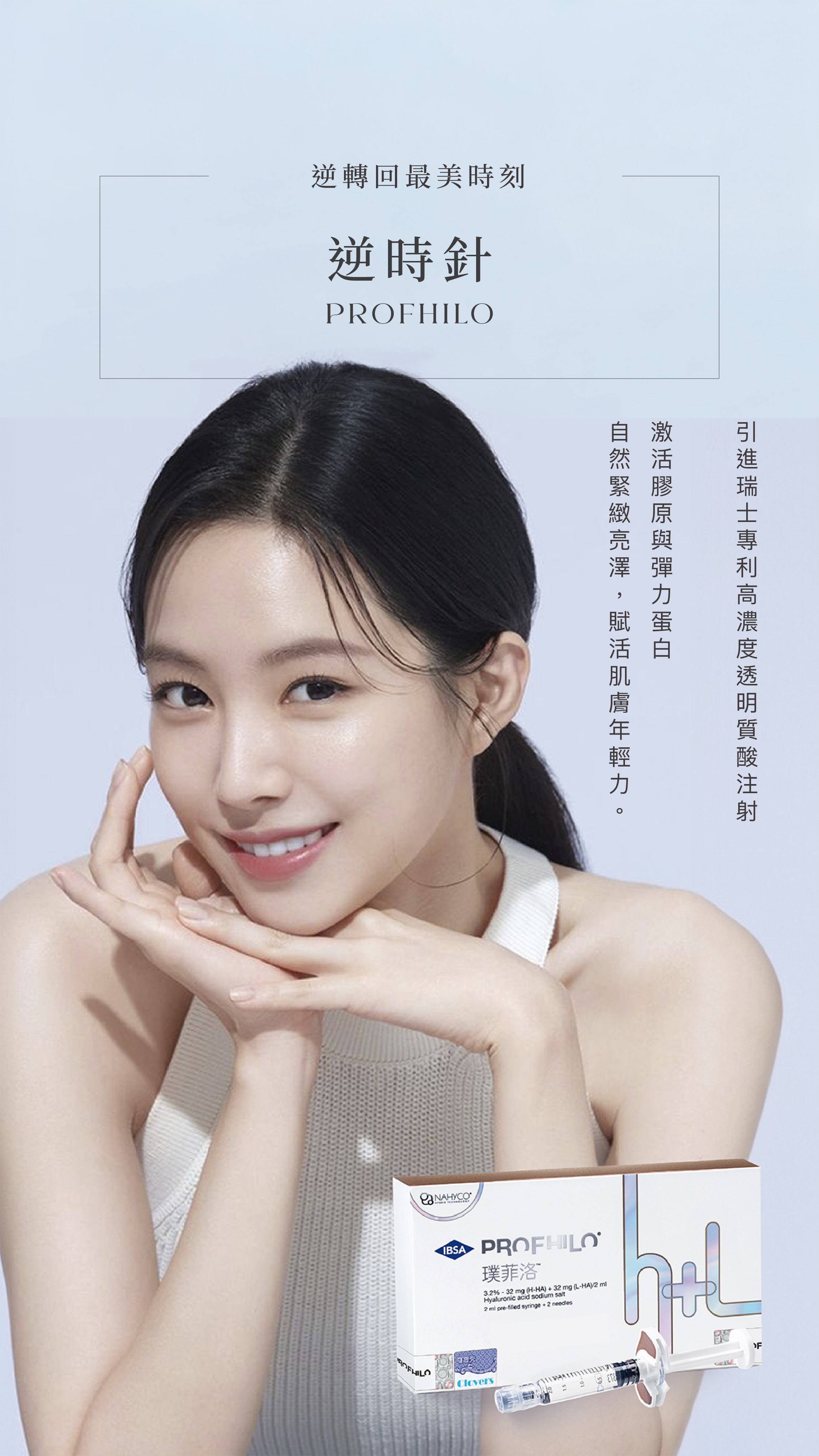 PROFHILO逆時針採用專利的臉部「5點式 BAP注射法」(Bio Aesthetic Point),每側臉部僅需注射5個點位,以及頸部的「10點式 BAP注射法」,能明顯消除其他療程難以改善的頸部紋路 ,加上多點位的方式能最大程度降低瘀青與副作用,並確保玻尿酸均勻擴散至整張臉。