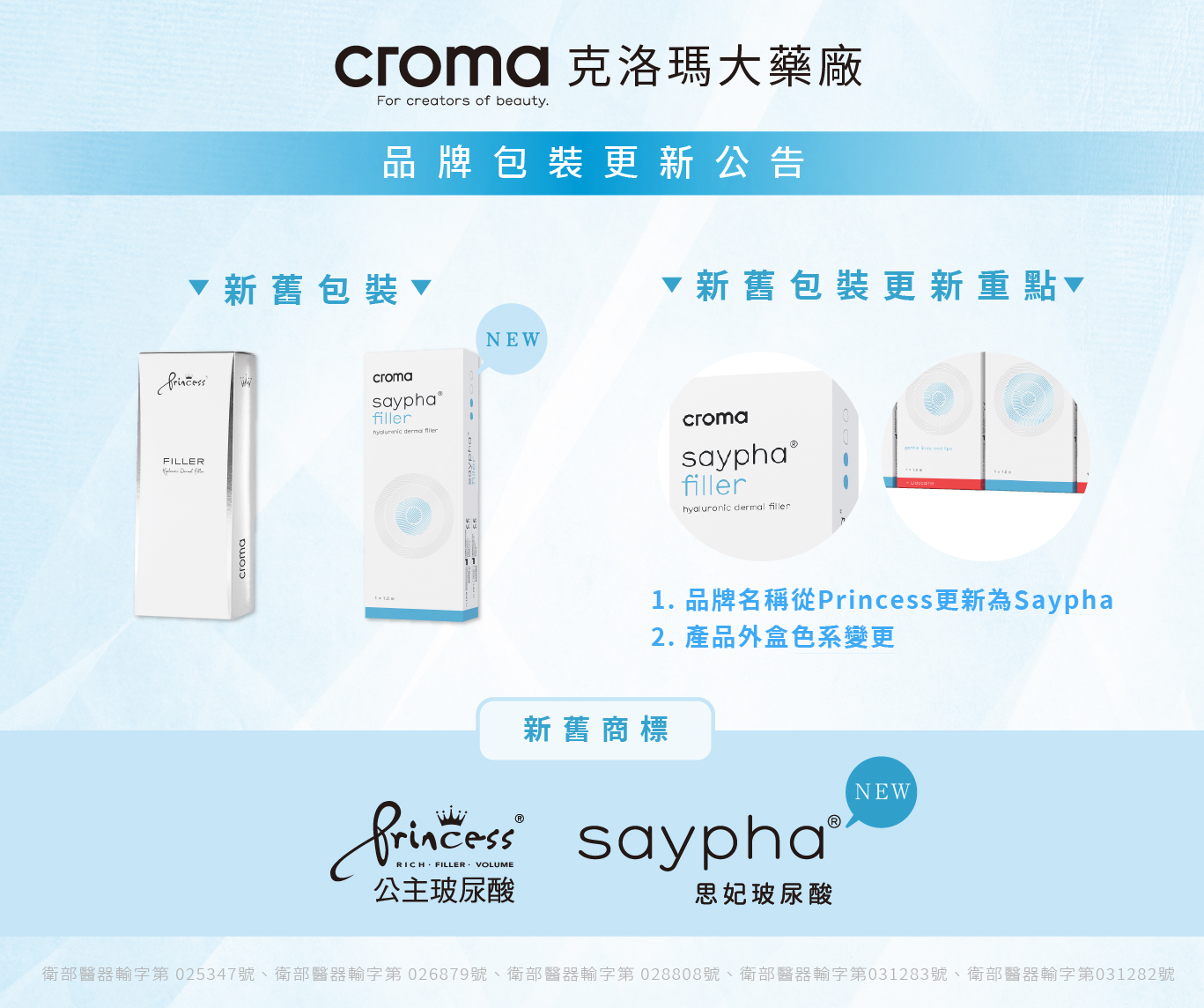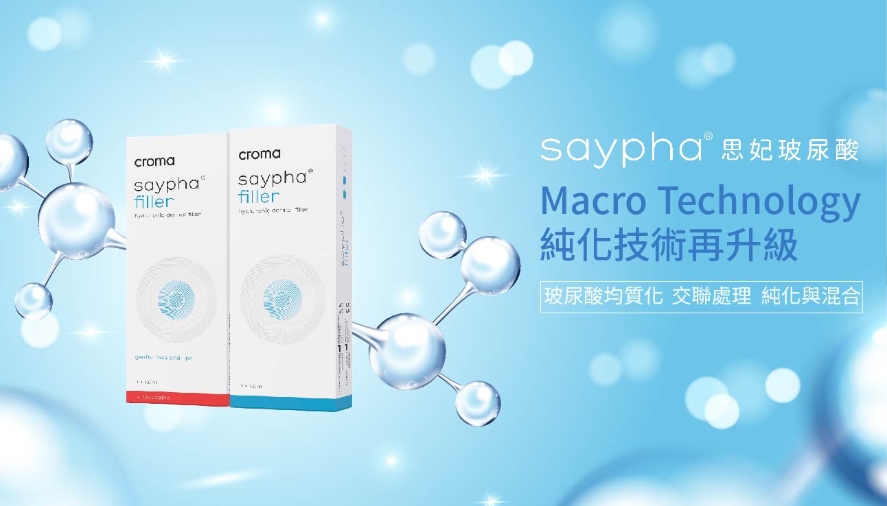 Saypha 玻尿酸來自奧地利 Croma-Pharma 製藥集團,是歐盟 CE 認證的高純度注射型玻尿酸。使用非動物來源 HA 經生物發酵萃取,並以 SMART 交鏈技術打造穩定凝膠網狀結構,使 Saypha 在填補、塑形、保水三方面表現更均衡。