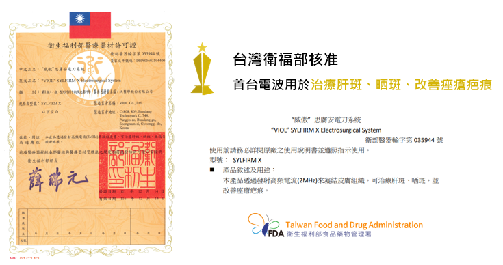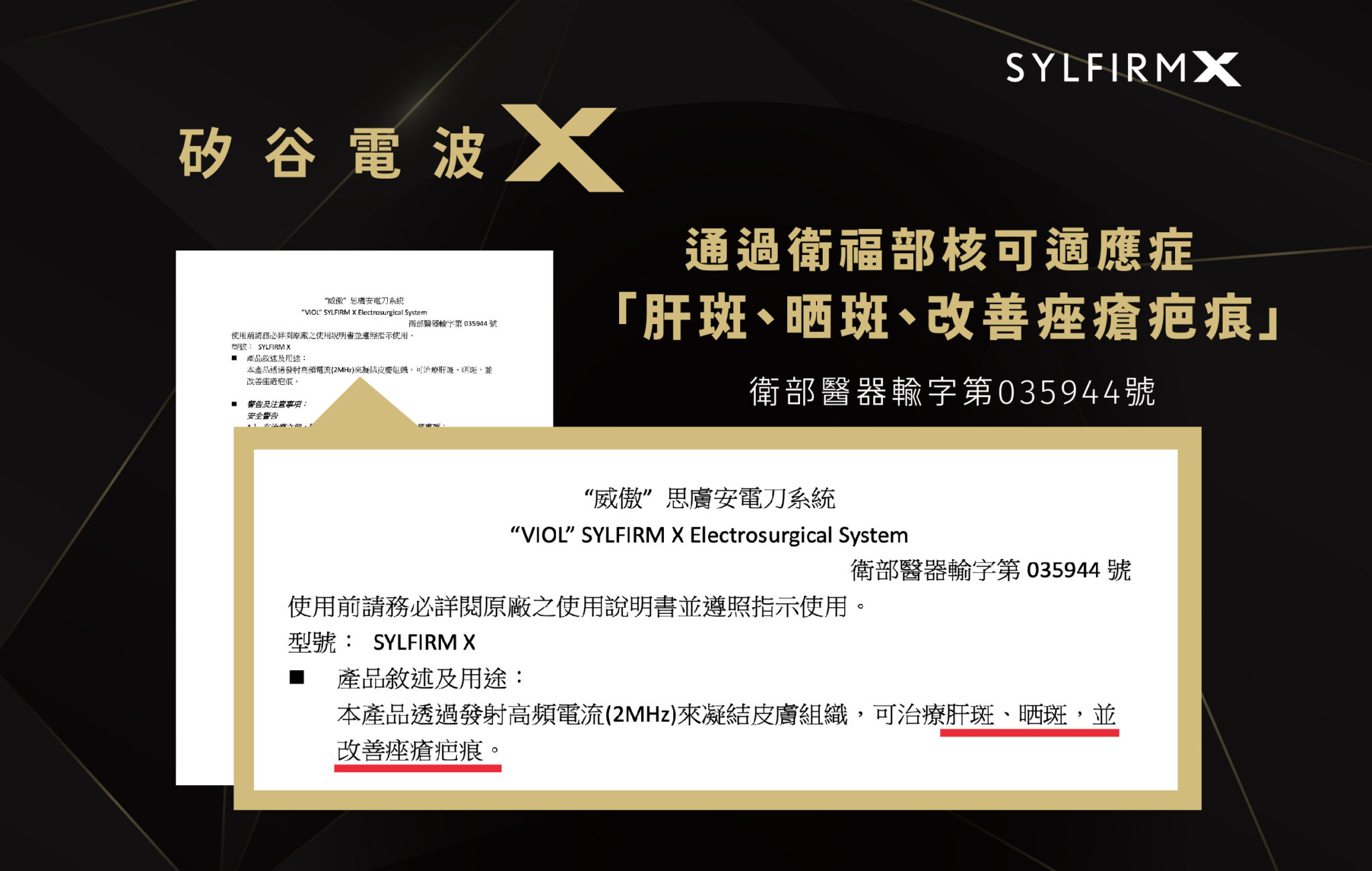 肝斑治療被稱作 “皮膚問題大魔王”,在肝斑治療上也需特別小心,像是術後反黑、容易復發 等,而矽谷電波X 正是成為肝斑患者的全新曙光!率先通過台灣衛福部 TFDA 認證,取得肝斑、曬斑、改善痤瘡疤痕(痘疤)等適應症,因此矽谷電波X 又被市場稱為 肝斑電波。