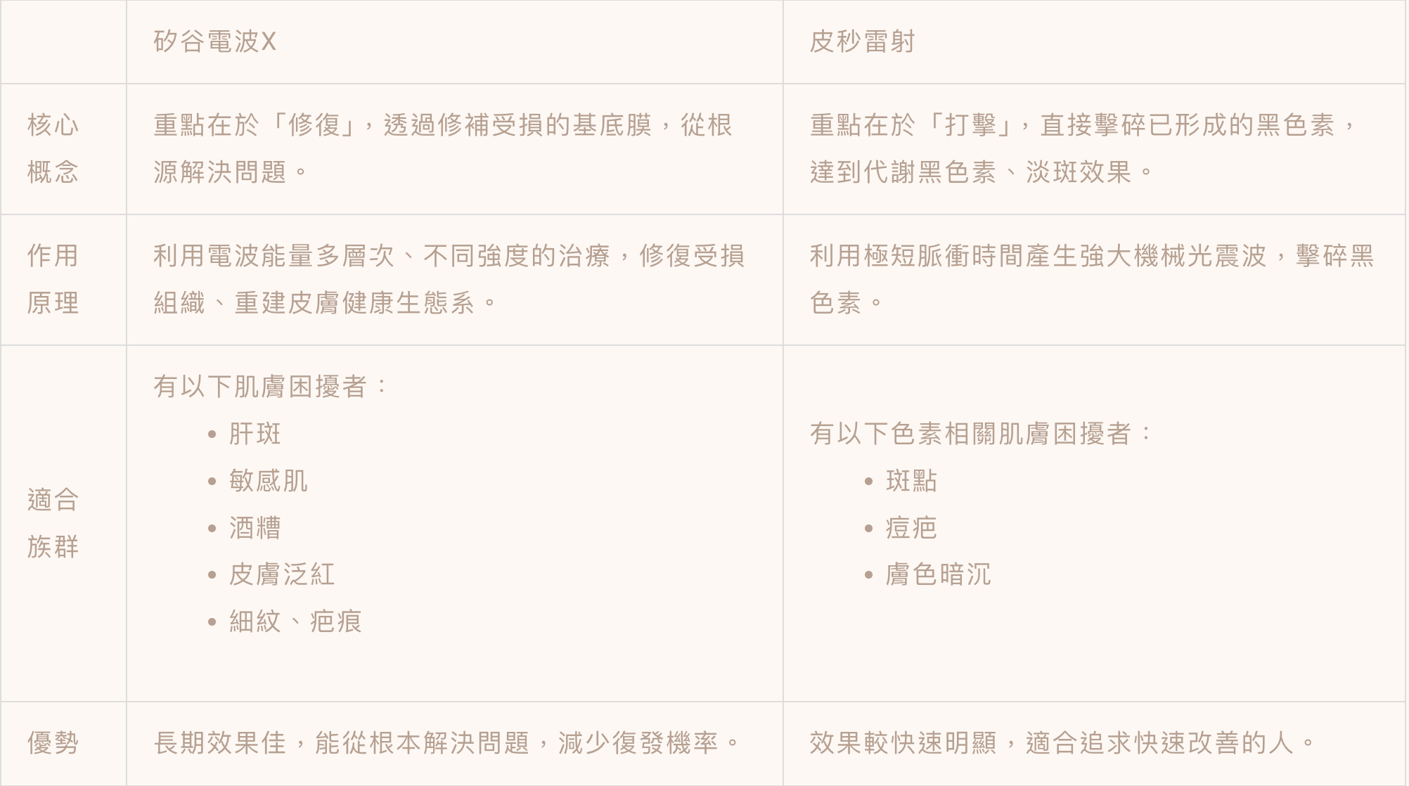 - 核心概念:重點在於「打擊」,直接擊碎已形成的黑色素,達到代謝黑色素、淡斑效果。