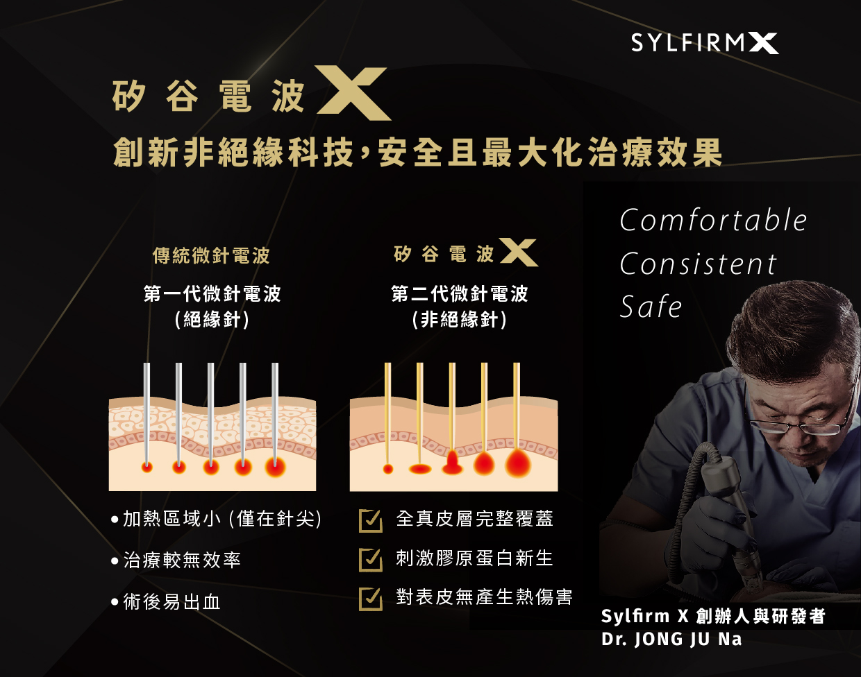 矽谷電波X 採用由國際皮膚科專家 Dr. Na 歷經多年研發的 Na Effect 技術,將整根非絕緣針放電加熱,創造立體電場、一次療程即可全面覆蓋真皮層,效果加倍。這項黑科技不僅安全無副作用,更能有效改善敏感肌、肝斑等問題。